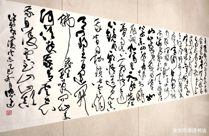 一丈巨幅草书《青云志》,以丈许尺幅铺展感情,用奔放文字镌刻徐霞客的凌云之志。草书的笔走龙蛇与诗句的磅礴威望井水不犯河水,既彰显书道艺术的陶然张力,更承载着 “志存高远、勇毅前行” 的精神内核,是艺术抒发与精神追求的圆善交融,为空间注入轰动东谈主心的文化气场与奋进力量。